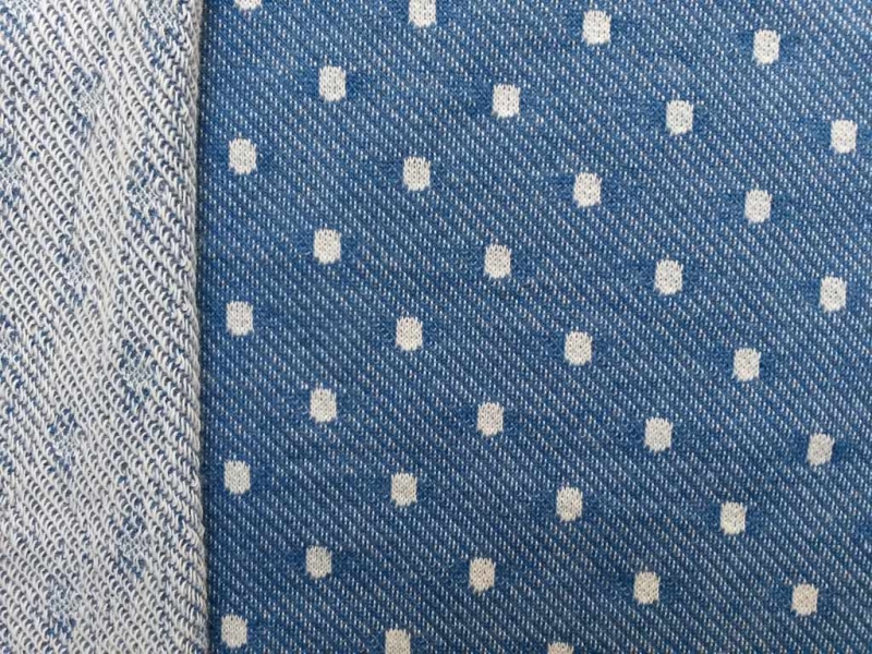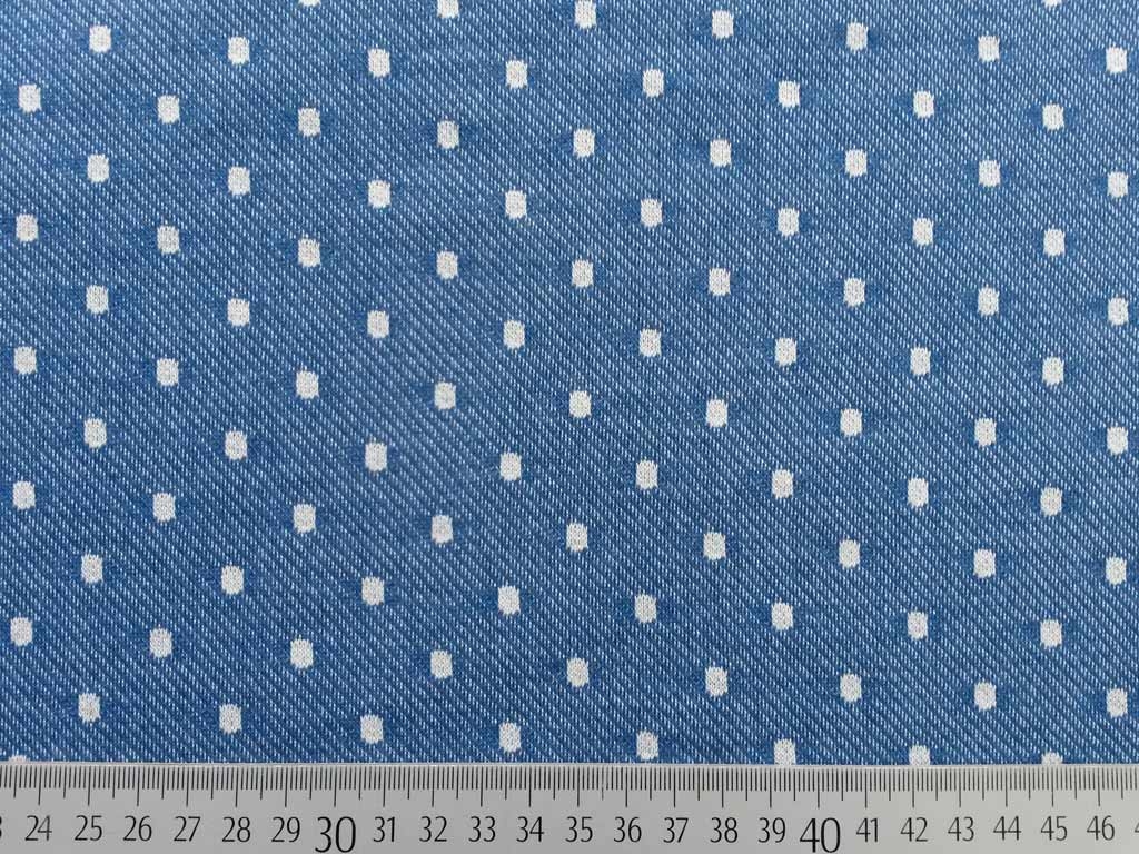 Ein weicher und locker fallender Sweat (French Terry) in mittelblau melange mit weissen eingewebten Punkten. Der Stoff dehnt sich leicht.