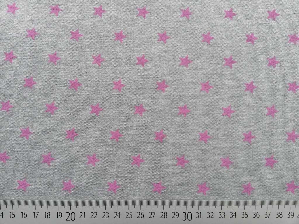 Ein super cooler Sweat in grau melange mit 1 cm grossen Sternen in hellpink. Kuschelig weich aufgrund der angerauten Rückseite!