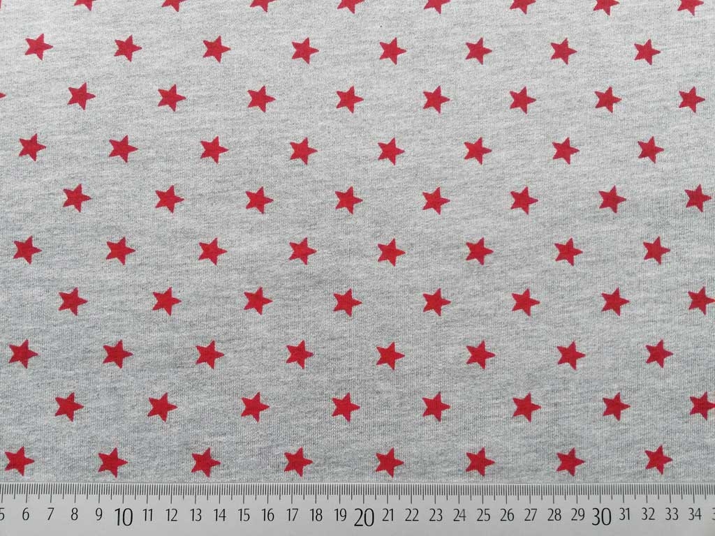 Ein super cooler Sweat in grau melange mit 1 cm grossen Sternen in rot. Kuschelig weich aufgrund der angerauten Rückseite!
