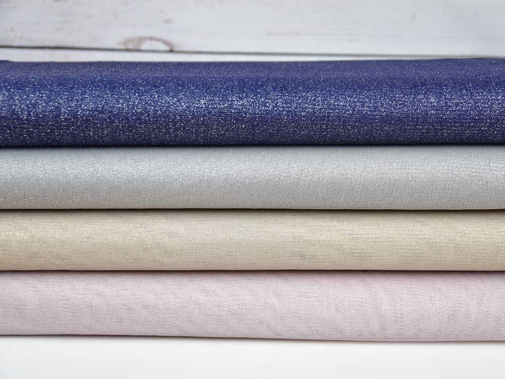 Ein weicher und elastischer Tüll in beige mit silberfarbigem Glitzer. Der Stoff ist weich im Griff und fällt locker.