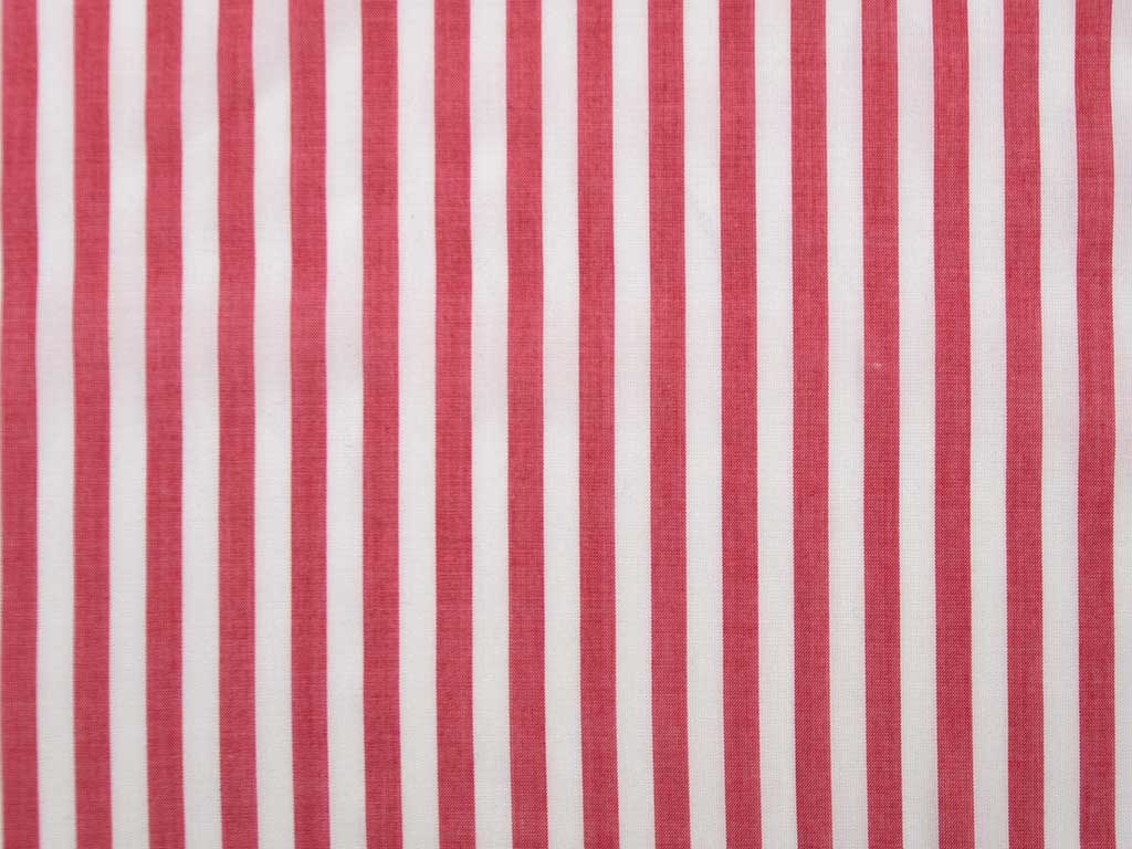 Ein leichter Viskosestoff mit 0,5 cm breiten Streifen in rot-weiß.