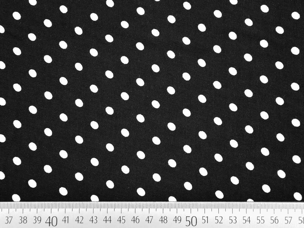 Ein weicher fließender Viskosestoff in schwarz mit weißen 8 mm großen Punkten.
