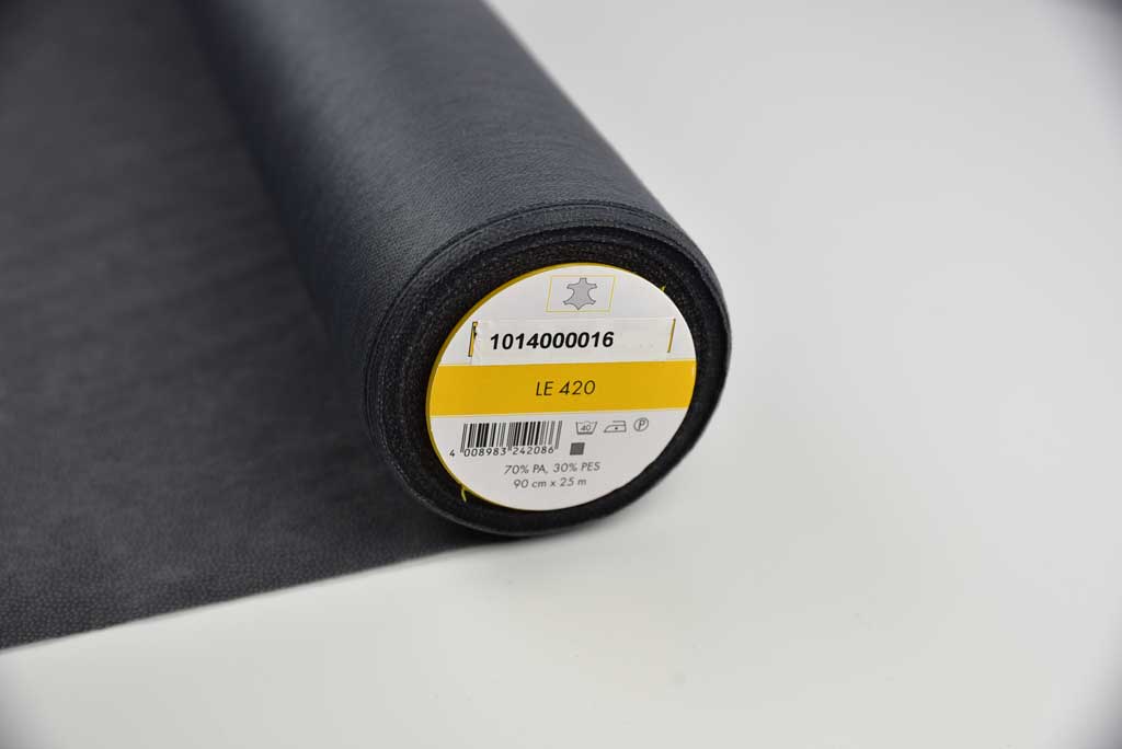 Ledereinlage für Vorderteile, Kragen, Manschetten etc. an Jacken, Mänteln und Kleidern in merino. Einfache Verarbeitung durch trockenes Aufbügeln. Unterstützt die Form, ohne den Griff zu verfälschen. Kein Verhärten des Leders. Besseres Nähen ohne Verziehen und Verschieben des Nähgutes.