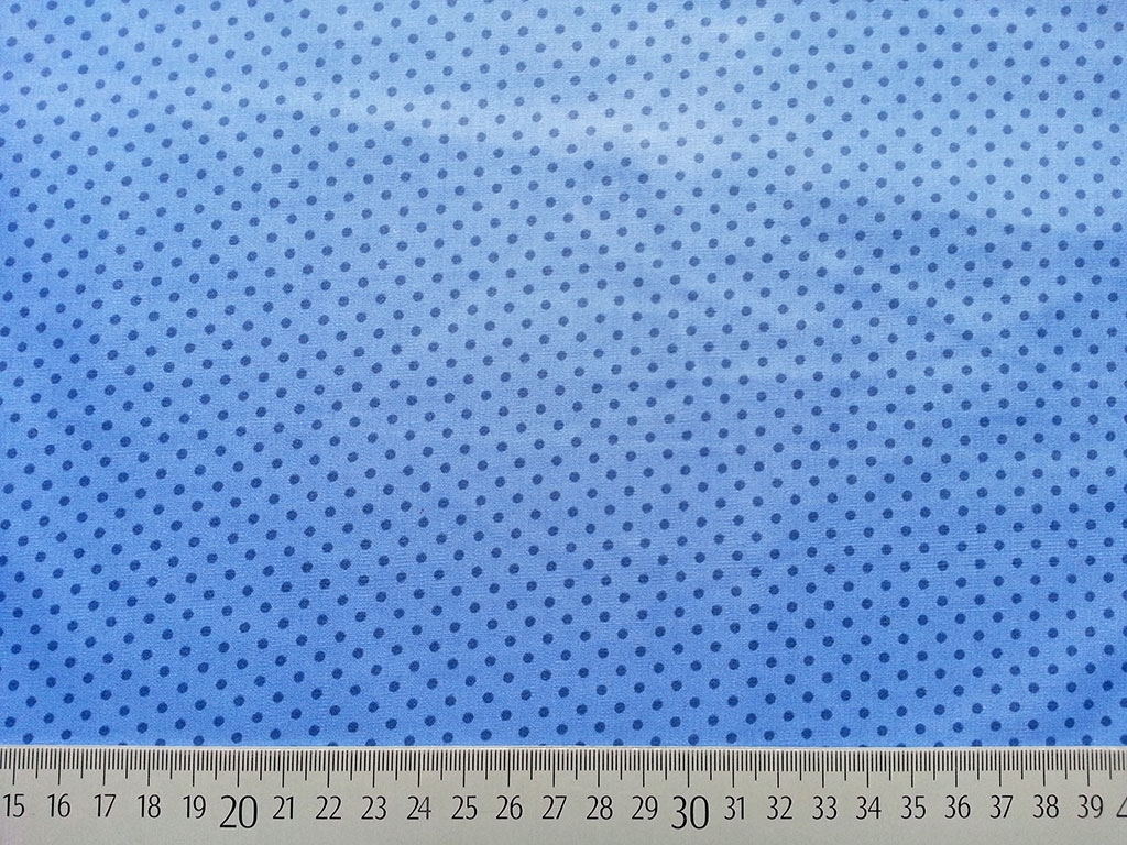 Ein beschichteter Baumwollstoff in hellblau mit 2mm großen Punkten in jeansblau.