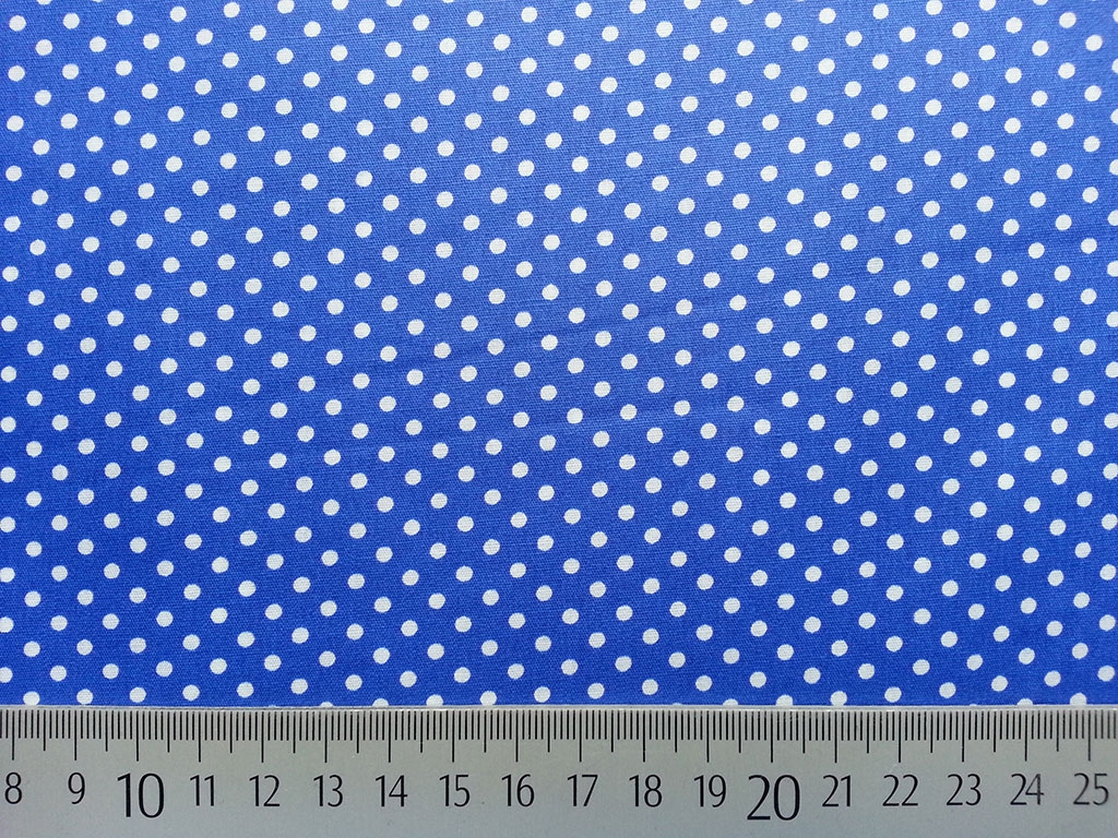 Ein royalblauer beschichteter Baumwollstoff mit weißen Punkten. Die Punkte sind 0,2cm gross.